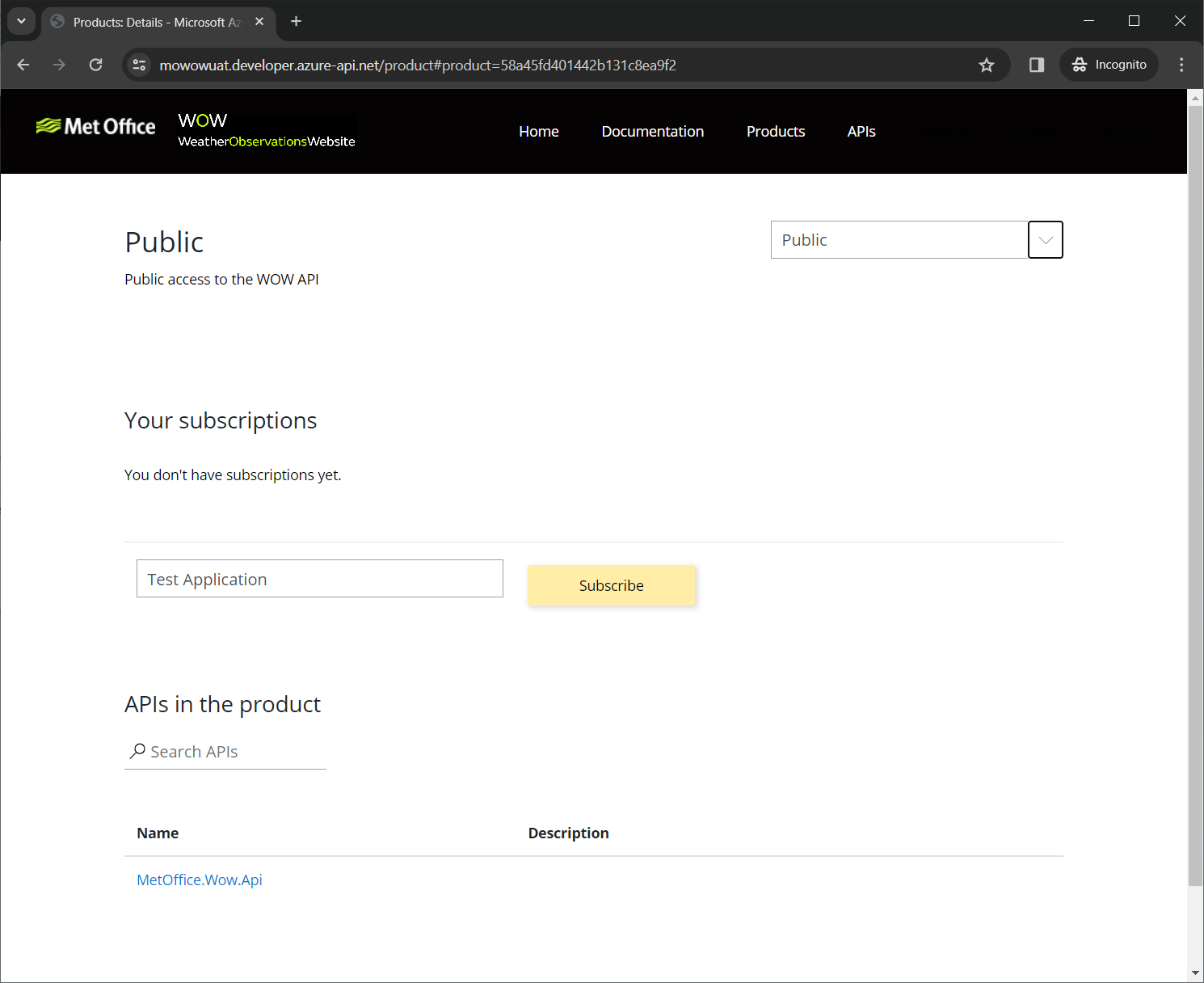 You can see that state is Submitted. When MetOffice confirms your request, you will be notified via e-mail. After that, you can visit your profile page again to get your subscription key.